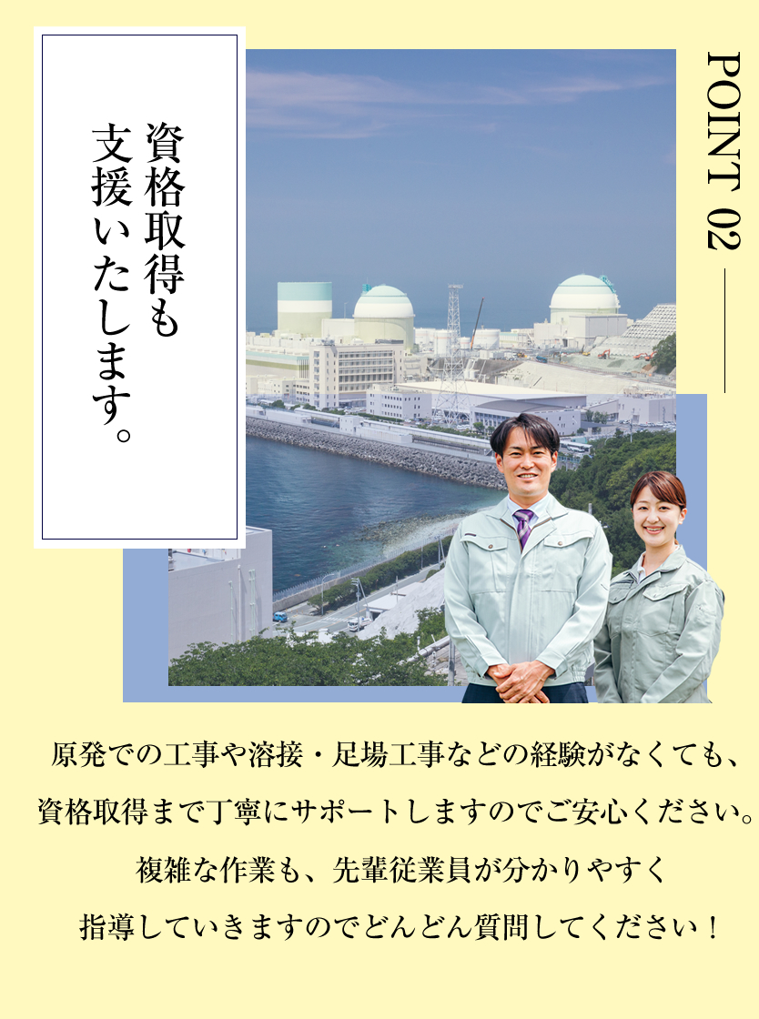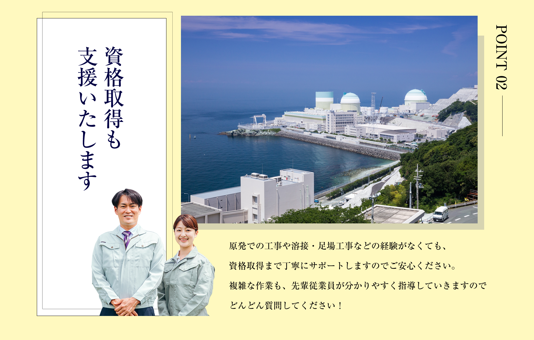 資格が重要となる業務が多いため、弊社では資格取得を積極的に応援しています。費用や技術、座学の面で手厚いサポートを行なっていますので、エンジニアとしてのスキルアップを目指す方も、ぜひ弊社にお越しください。